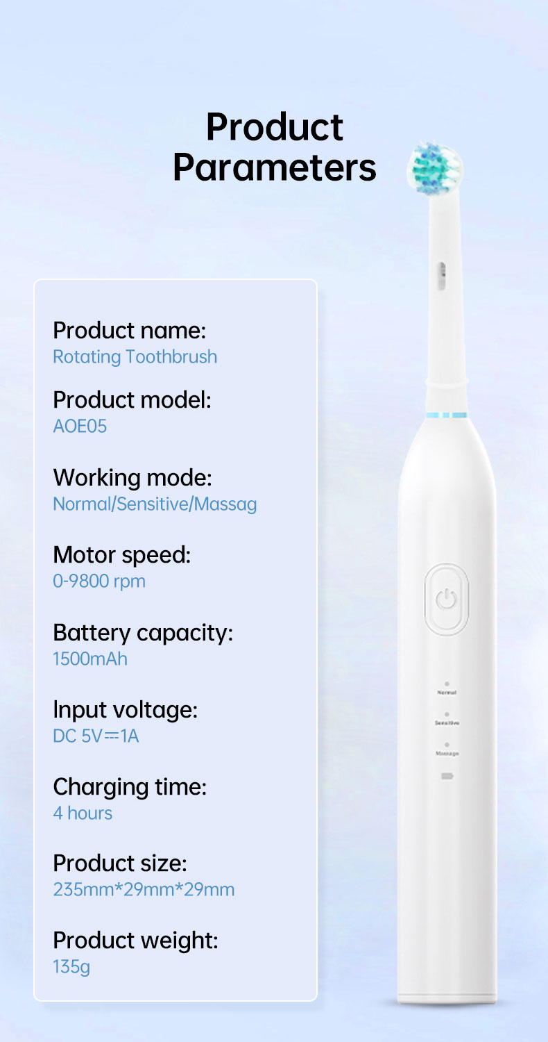 【EXTRA Replacement Brush Heads Last for 2 Years 】The rotating electric toothbrush comes with extra DuPont brush heads, which you can use for 2 years. You can share a toothbrush, and different color collars can be used to distinguish the toothbrush heads of different family members. You will know it's time to change the brush head