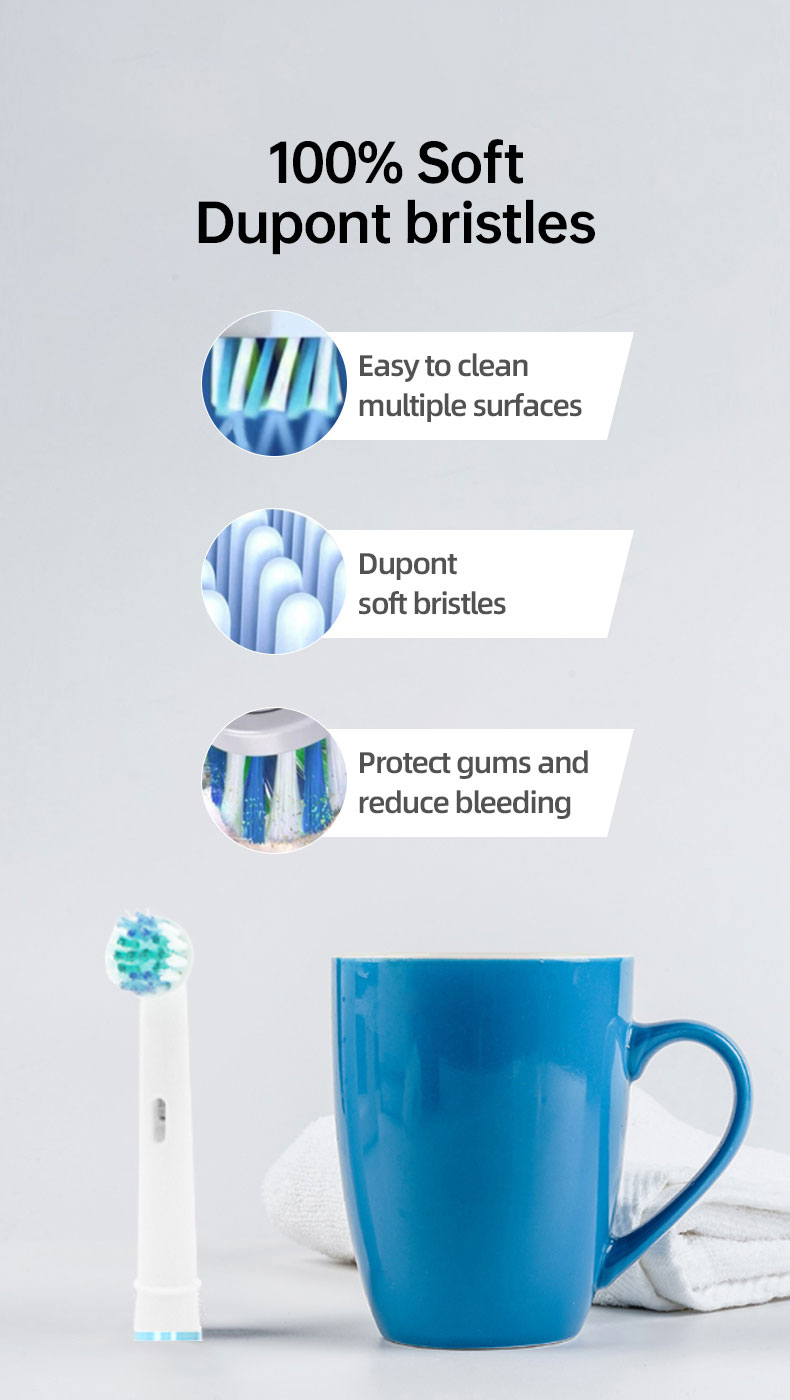 【Professional Dual Clean Replacement Toothbrush Heads】The Dual Clean replacement toothbrush head has 2 type brush heads for a comprehensive clean. One bristle with special soft glue section cleans exogenous coloration effectively to whiten teeth, while the other head with 60% greater density durable bristles provides deep cleaning and 𝟏𝟎𝟎% teeth stain removing. Dual Action provides superior cleaning