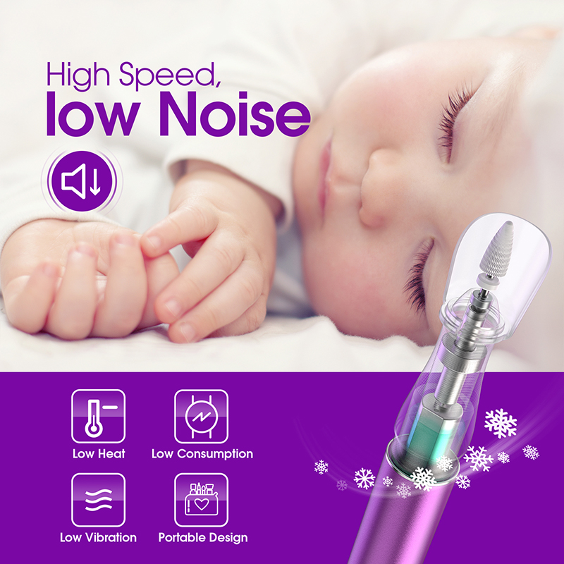 Este taladro eléctrico para uñas cuenta con el último cuerpo de aluminio con diseño antivibración, que puede reducir eficazmente el ruido y el calor al pulir las uñas, lo que garantiza que no molestará a nadie mientras se pule las uñas. La apariencia ergonómica en forma de bolígrafo proporciona un agarre cómodo y antideslizante y le permite quitar las uñas de gel con facilidad.