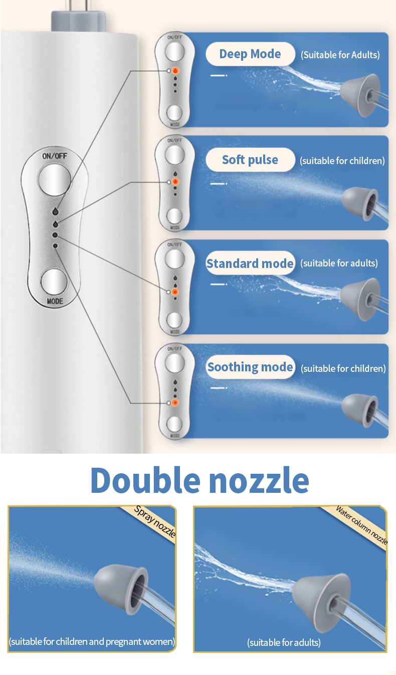 5 modos de funcionamiento para satisfacer diferentes necesidades de lavado nasal.