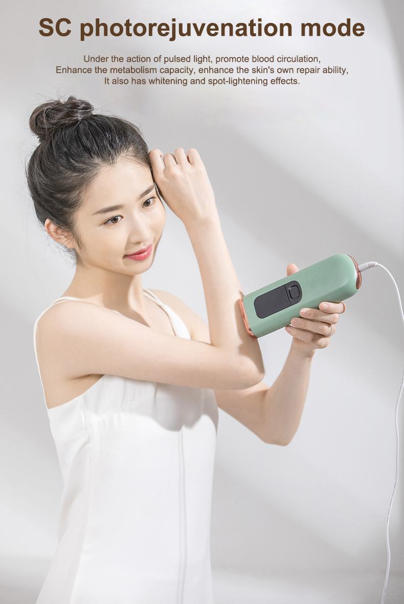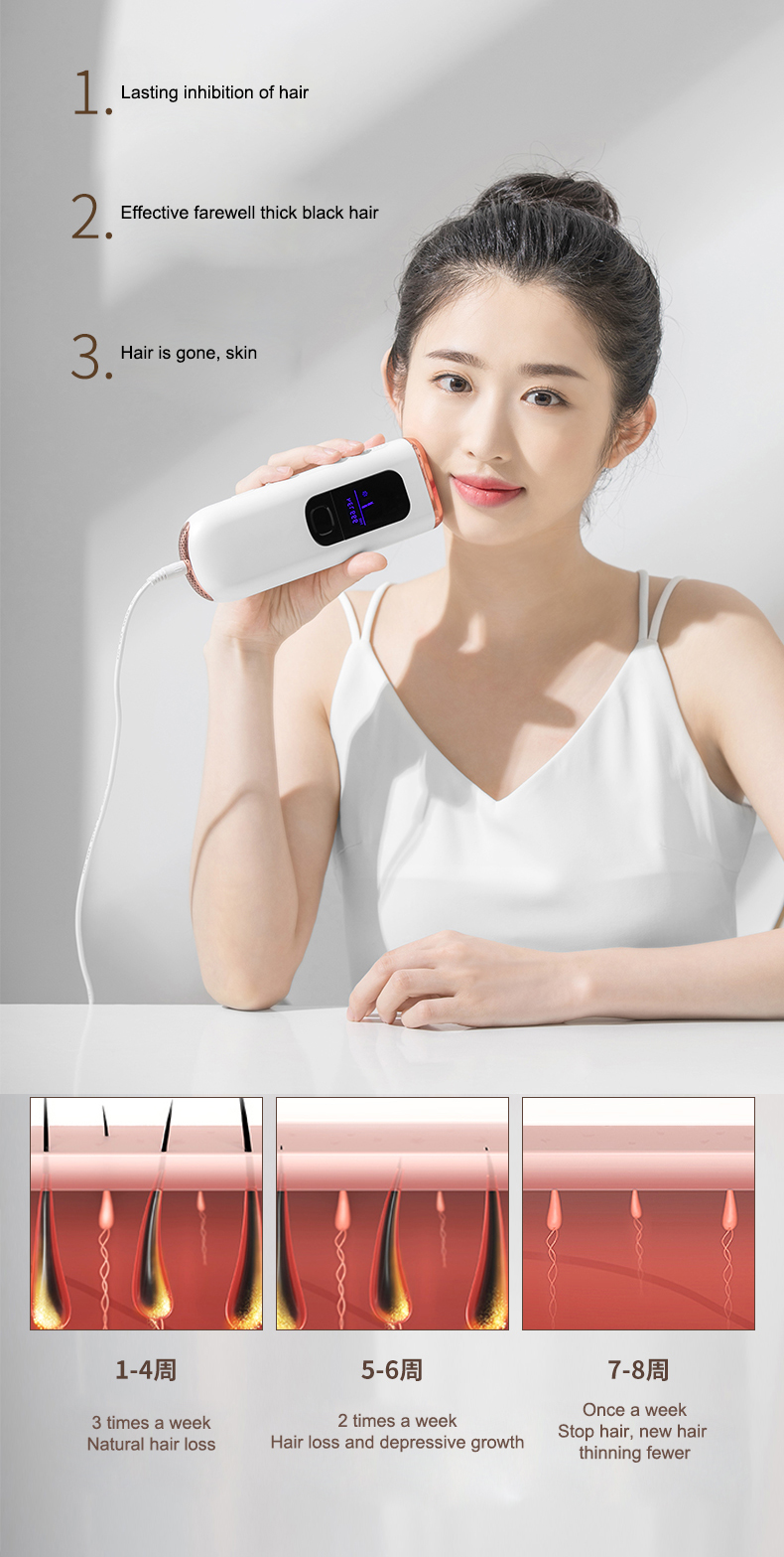 (Nota: 1. No es adecuado para pieles tatuadas y bronceadas, áreas heridas y embarazadas. 2. Es un dispositivo enchufable, mantenga el dispositivo siempre conectado a la corriente durante el tratamiento).