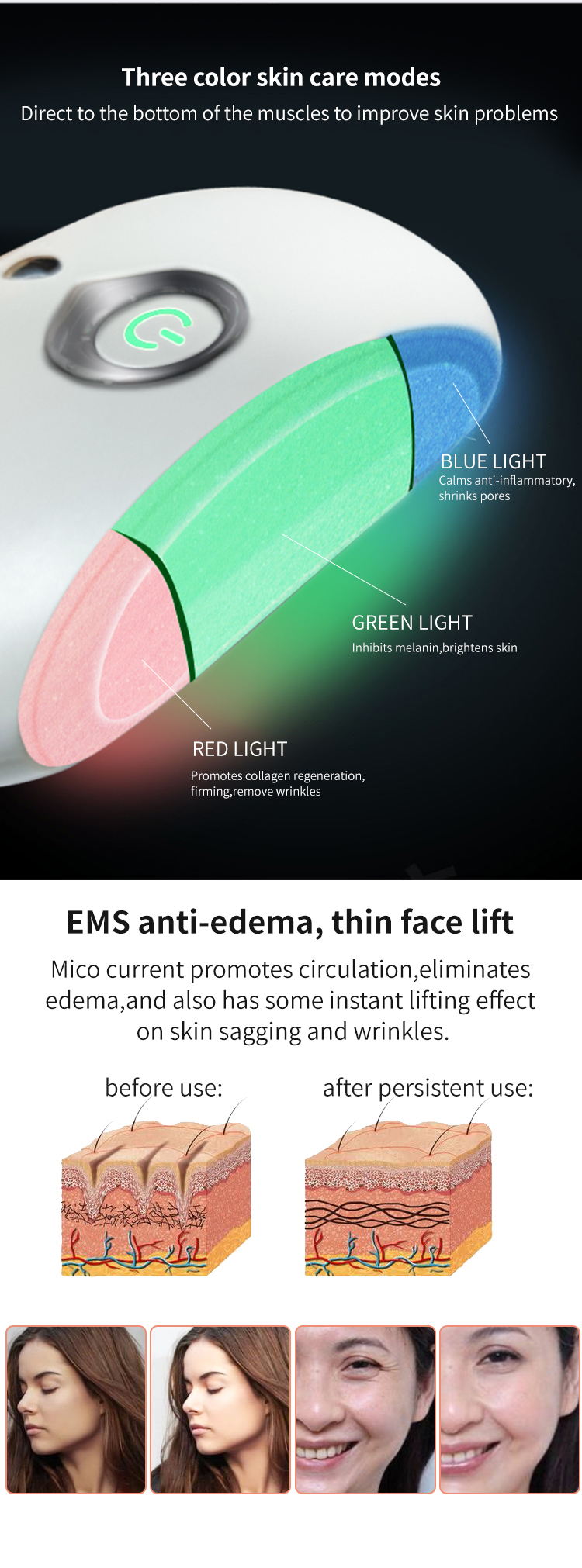 Modos de cuidado de la piel de tres colores, directo a la parte inferior de los músculos para mejorar los problemas de la piel.