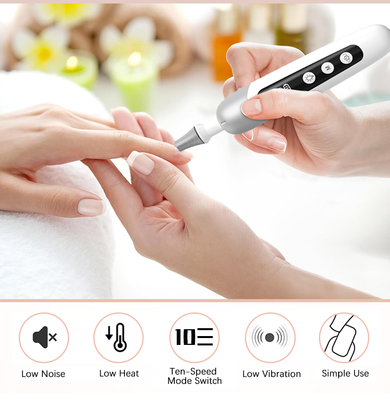 - INALÁMBRICO Y RECARGABLE: El taladro eléctrico inalámbrico para uñas es perfecto para viajar y ofrece un impresionante tiempo de funcionamiento de 10 horas. Una herramienta de pedicura conveniente para los pies y todas sus necesidades de manicura y pedicura. Nuestra lima de uñas es adecuada para uñas naturales, acrílicas, de gel y de polvo de inmersión.