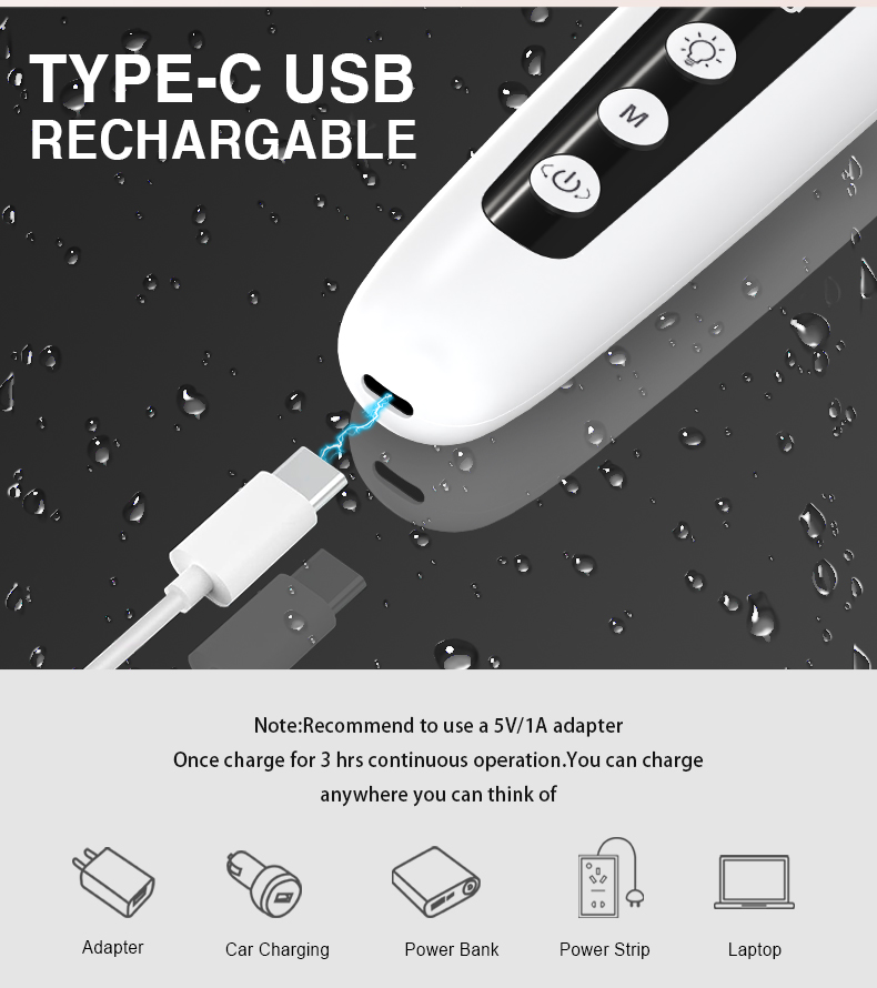4: DC 5V 1A TYPE-C Tiempo de carga: 3-4 horas