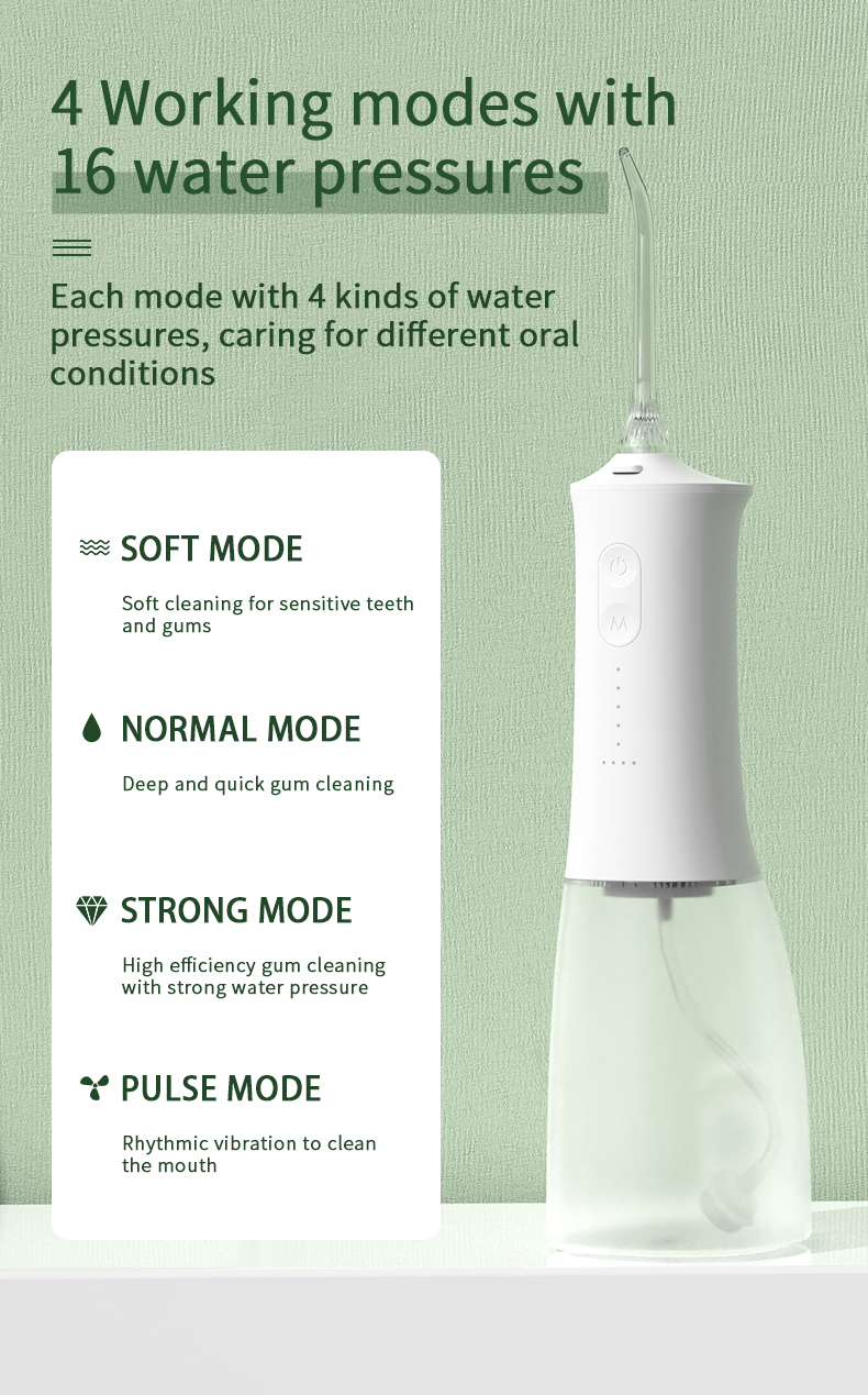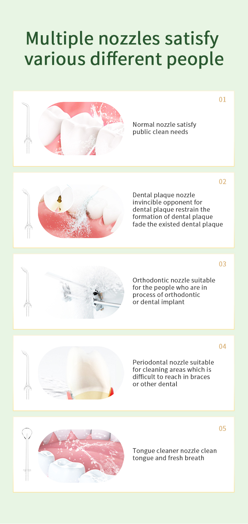 Este palillo dental de agua emite pulsos de alta presión de agua de 1400 a 1800 veces por minuto, eliminando eficazmente el 99,9 % de la placa dental para una limpieza dental profunda. Este palillo dental de agua masajea las encías, promueve la circulación sanguínea y aborda problemas bucales como el mal aliento y los dientes de ortodoncia.