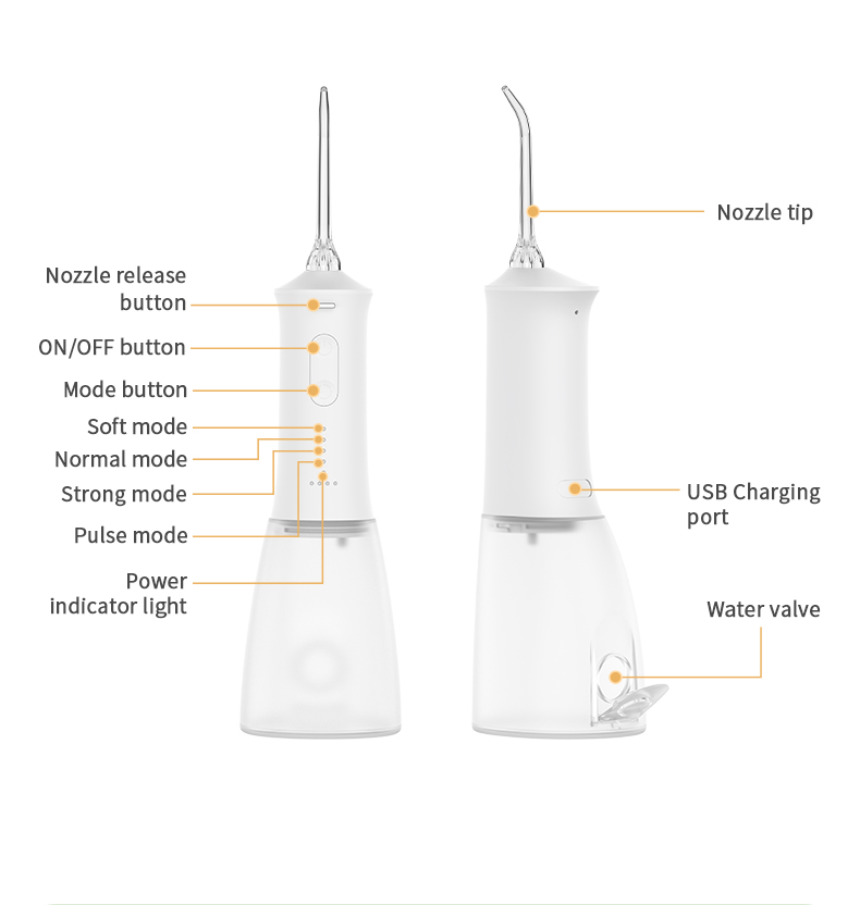 Nombre del producto: Irrigador bucal portátil con carga USB, recargable, con chorro de agua, resistente al agua, IPX7