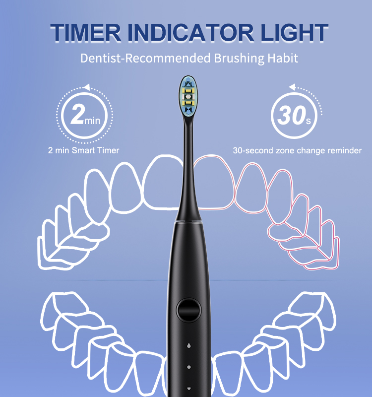 - TEMPORIZADOR DE NOTIFICACIÓN VIBRANTE INTELIGENTE: Control de temporizador inteligente incorporado, intervalo de 30 segundos que le recuerda que debe pasar al siguiente cuadrante de su boca, y totalmente en 2 minutos (4 cuadrantes), lo cual es altamente recomendado por dentistas profesionales, como una forma correcta de cepillado.